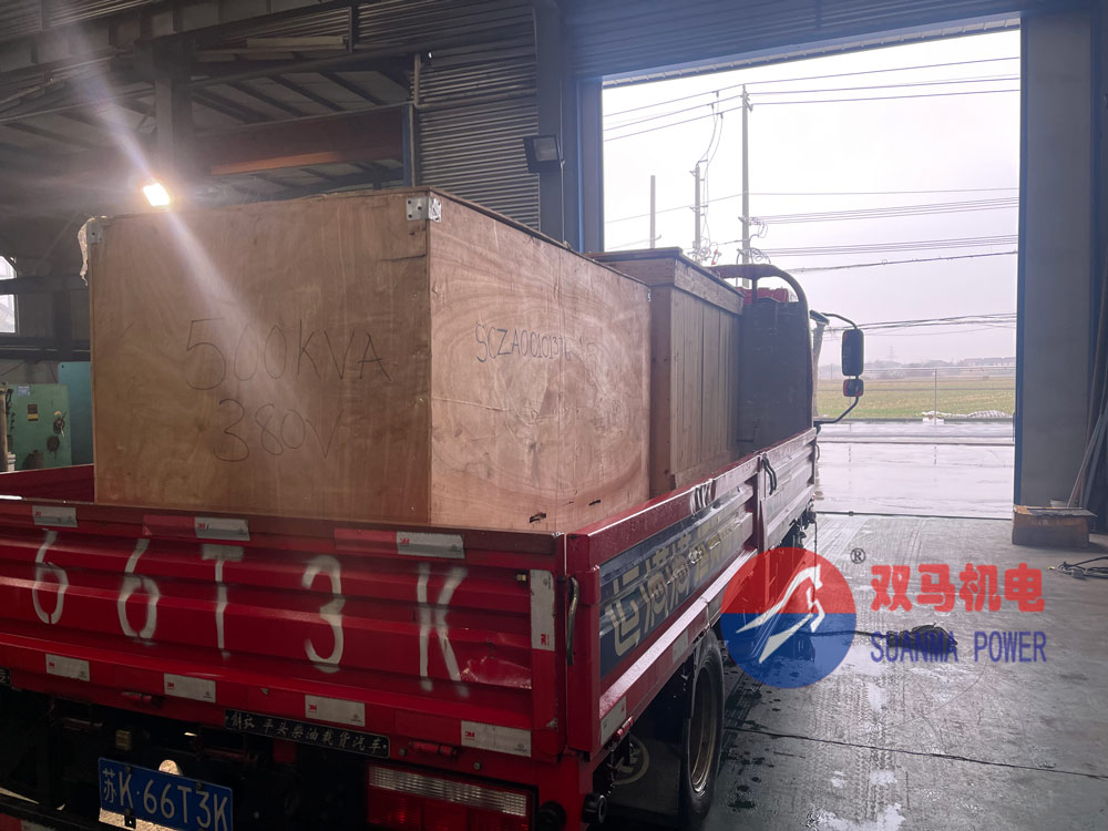 两台500kva玉柴开架式柴油发电机组装车发运青岛港,装柜出口。